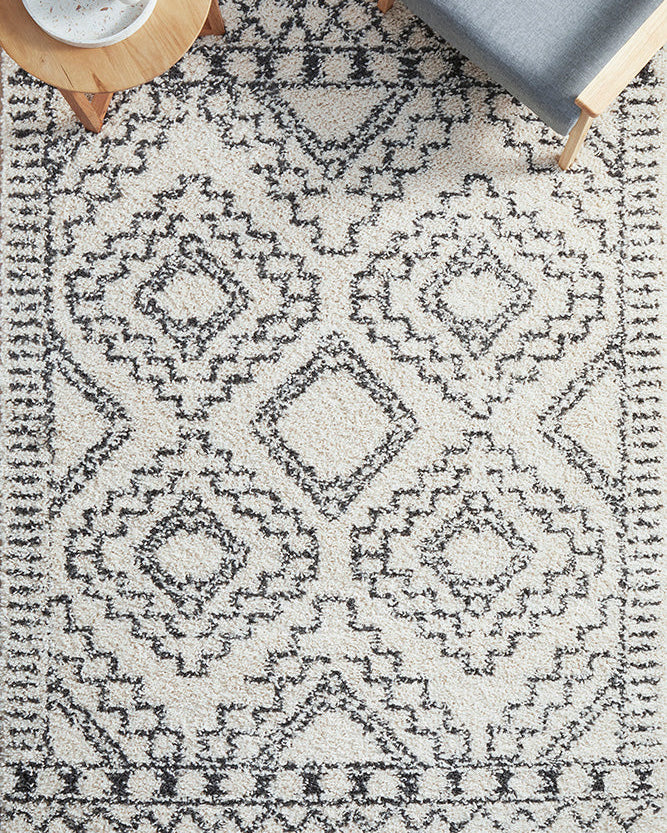 A monochrome lovers dream, Casablanca showcases an intricate tribal design that is ideal as a stunning centrepiece or as a neutral backdrop for bolder decor pieces. A perfect combination of tone and texture, Casablanca features a charming blend of ivory and charcoal hues that blend harmoniously together on a luscious pile of polypropylene fibres to create a one-of-a-kind elegant design.