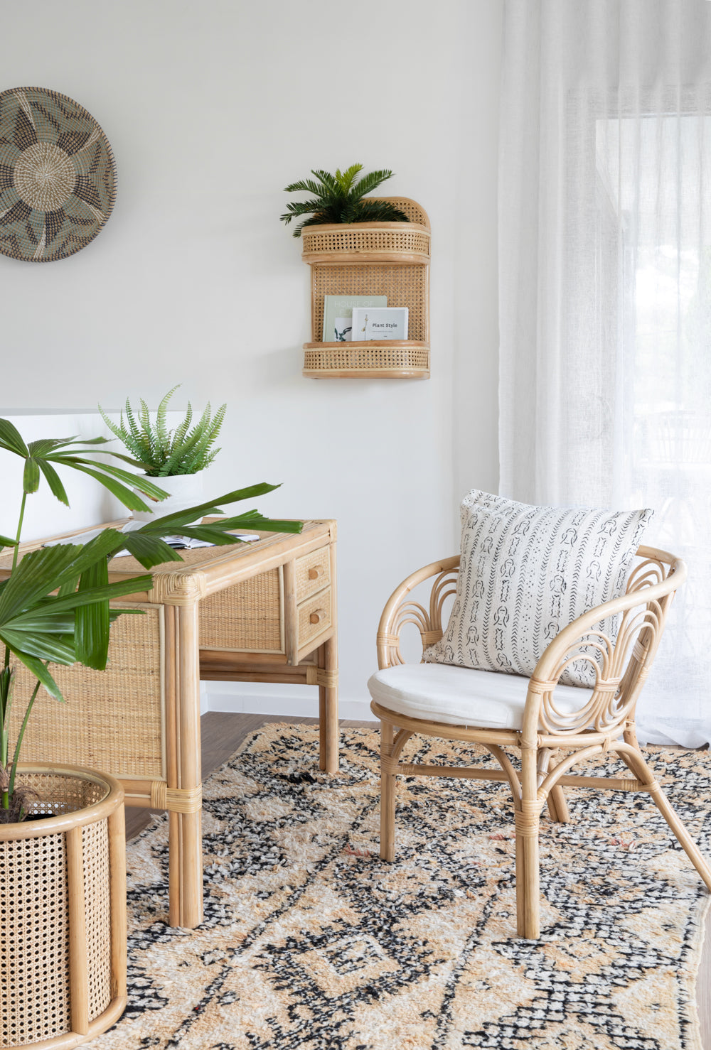 Transform your workspace with the effortless beauty of the Solana Rattan Desk. Handcrafted from premium, sustainably sourced rattan, this desk blends natural charm with functional design to create a serene and stylish environment for work or study.