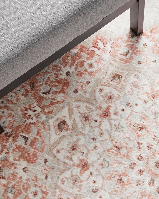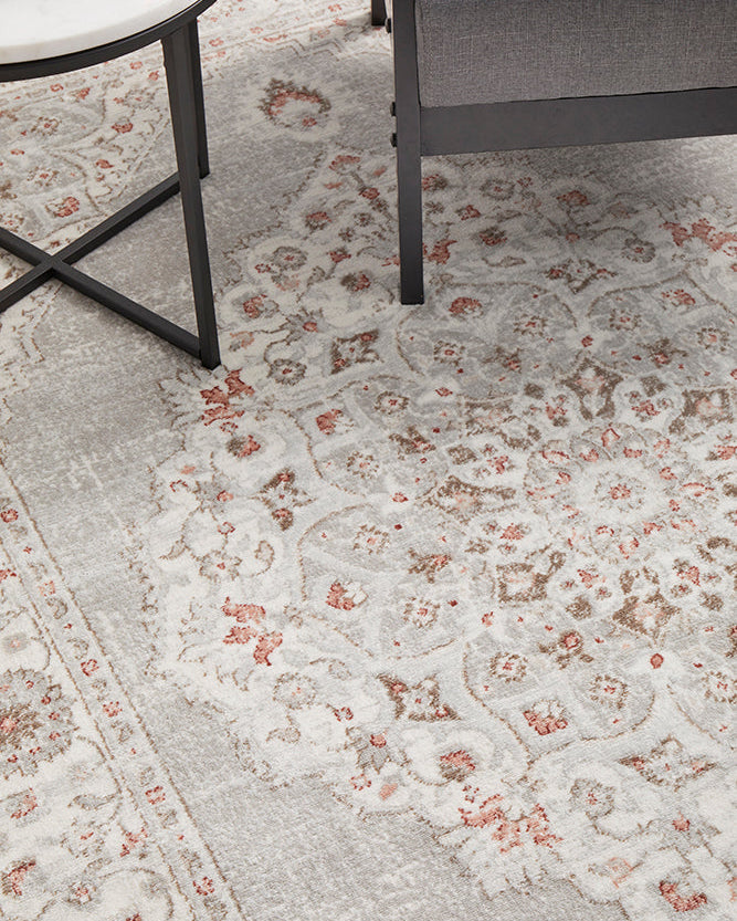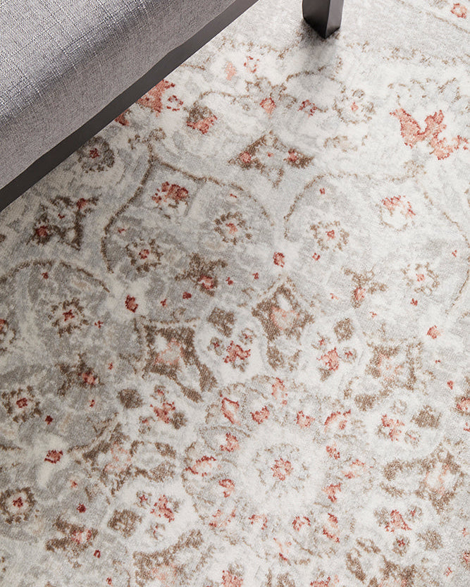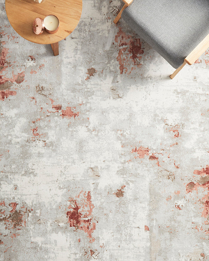 Emotion features a unique blend of softly mottled grey hues with accents of vibrant blush and terracotta reds. Woven in Turkey using modern loom techniques, Emotion is crafted from a 5mm pile ultra-soft plush of ultra-soft polyester fibres. This resilient fibre is stain resistant, pet-friendly, and perfect for high-traffic zones.