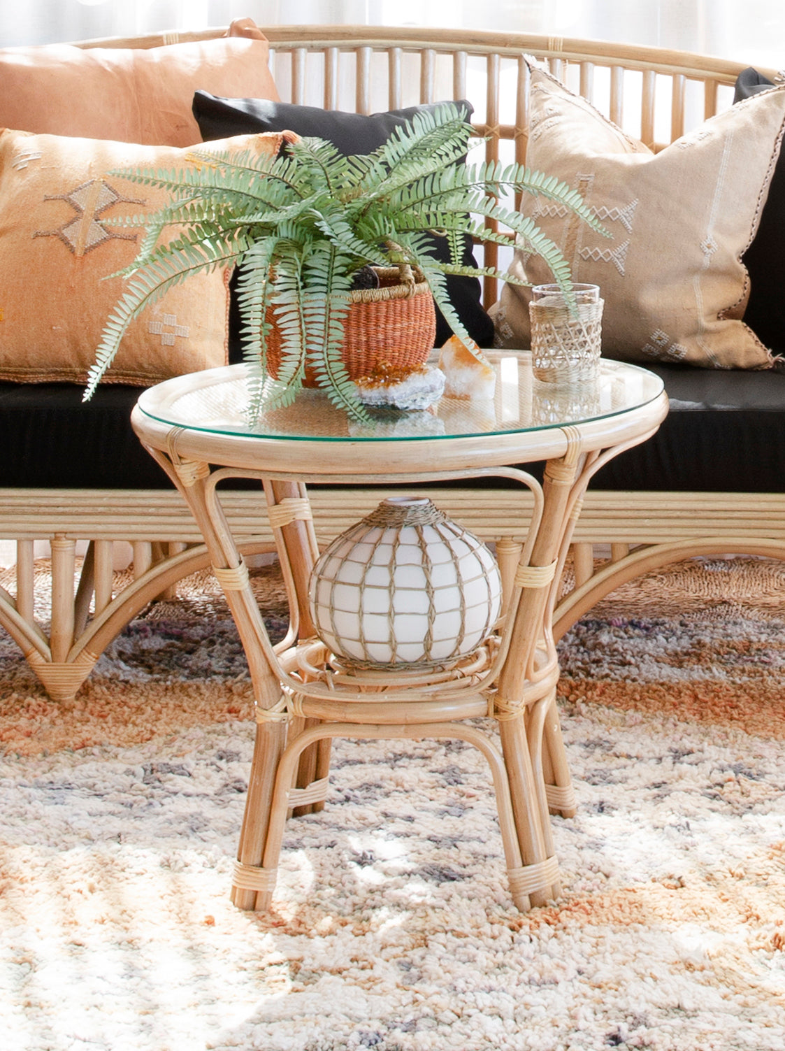 The tropical style Bahama table has got us dreaming of our next troppo escape! Our Bahama is a dreamy side table (or small coffee table) with a glass top and handy lower shelf to hold your reading material. This is the perfect place to rest your drink while sitting back on our matching rattan arm chairs.