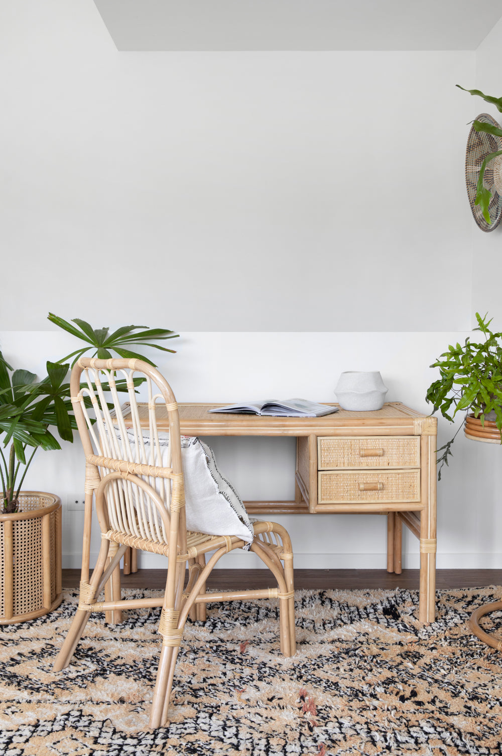 Transform your workspace with the effortless beauty of the Solana Rattan Desk. Handcrafted from premium, sustainably sourced rattan, this desk blends natural charm with functional design to create a serene and stylish environment for work or study.