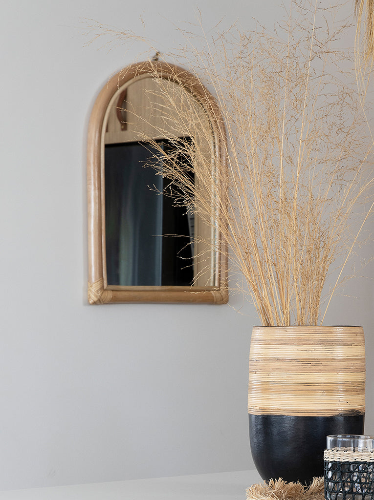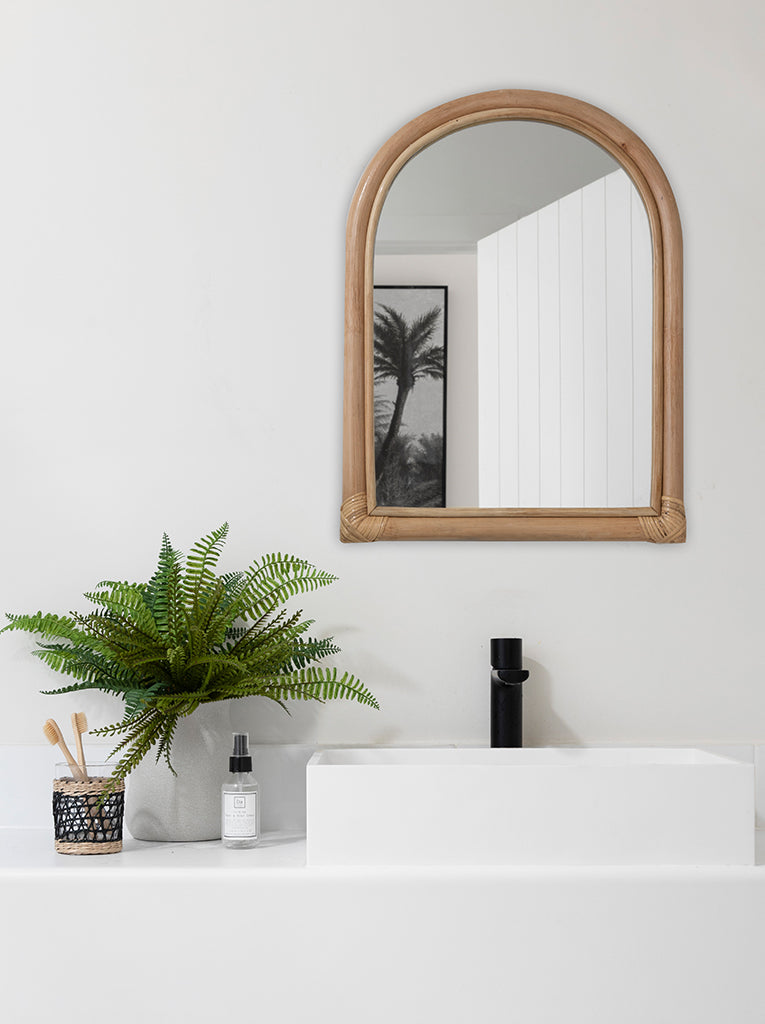 Our Sunrise Wall Mirror has a minimal arch design and nod to vintage style. This mirror is lightweight and perfect for resting against the wall on hall tables or bathroom vanity.
