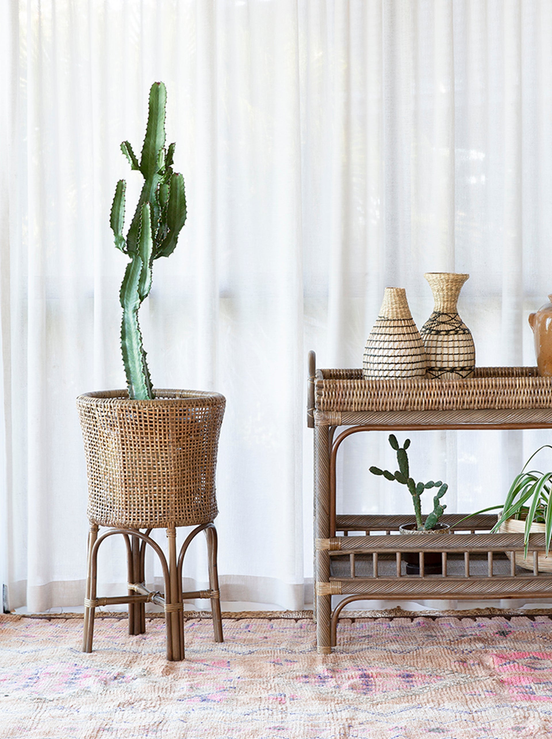 Have your plants sitting pretty in the limelight our Veil Rattan Plant Stands! Featuring an intricate crosshatched style, these bohemian plant stands come in a small and large size, which look incredible when styled together or separately. Available in Natural and Light Brown.