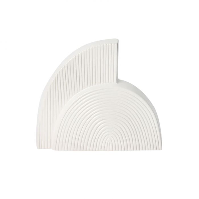 Crafted from ceramic, it displays a white appearance and abstract silhouette.