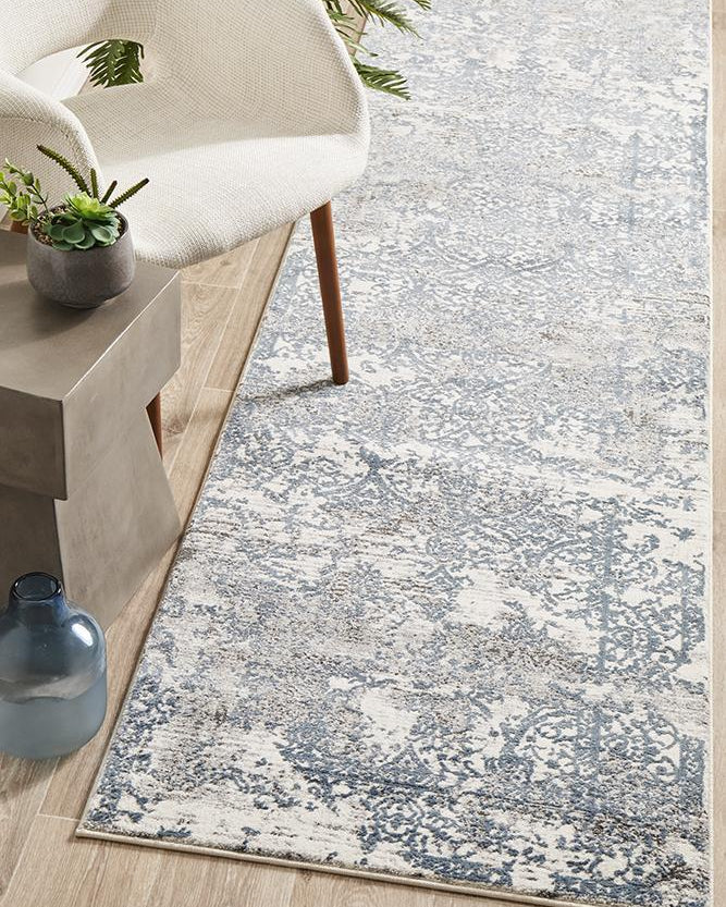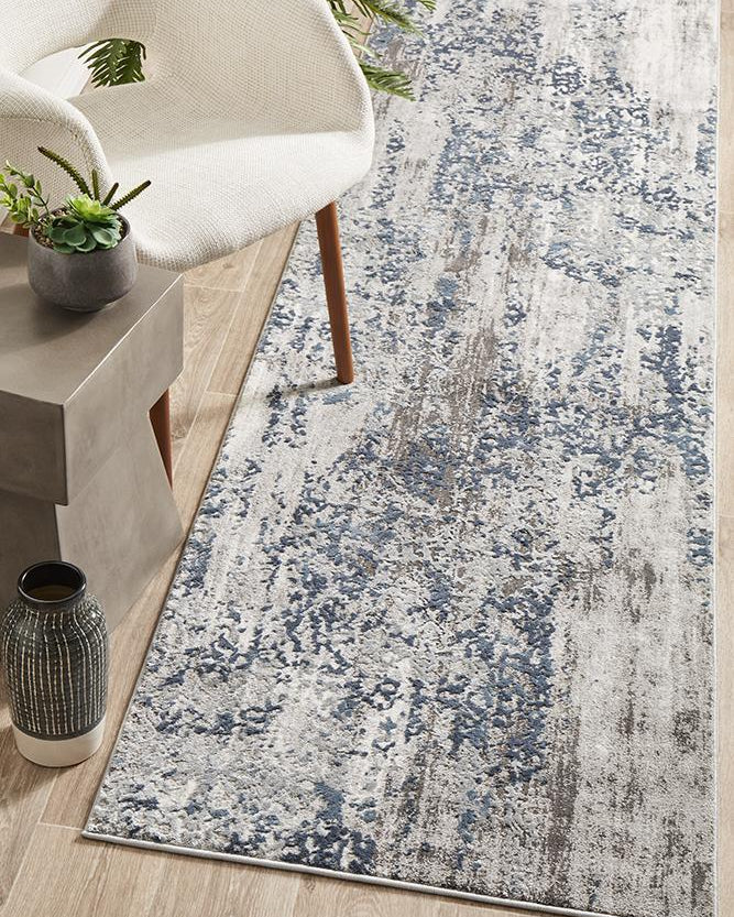 This eye-catching collection of luxury modern rugs is sure to make a stylish statement in any room. Its shades of grey, chalk, light and dark blue, and silver makes it an ideal transitional piece that can easily be integrated into any existing decor. The soft plush pile consists of a high-low effect with matt and slightly luminous fibre which feels truly sumptuous under foot. This rug will surely be the talking point of any room.