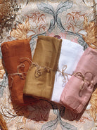 Available in Tiger Lily (rust), Marigold (mustard), Daisy (white), Cherry Blossom (pink) (order in picture)