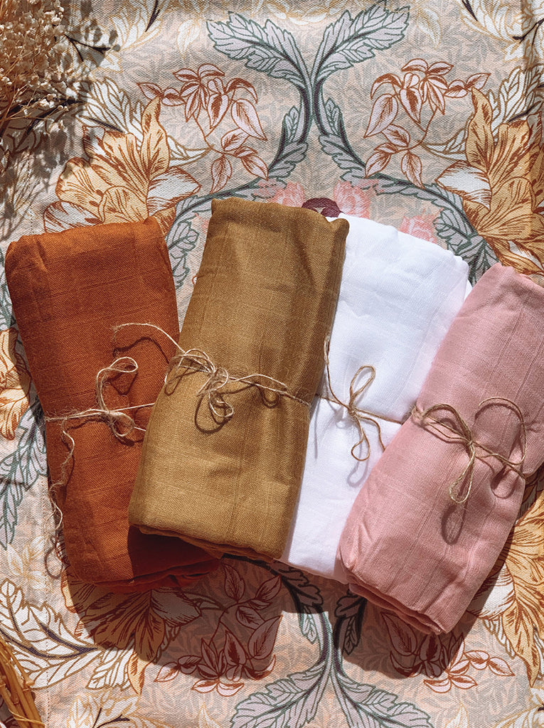 A luxury range of woven organic multipurpose muslin wraps made from sustainable 70% bamboo and 30% hand-planted cotton. This beautiful product is soft and gentle, offering both support and comfort. Inspired by nature this environmentally product can be used as a swaddle, nursing blanket, crawling mat, change mat and will continue to be useful into their toddler phase.