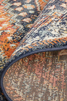 Bring out the beauty and elegance with a touch of global inspiration with this head turning, eye catching pile. The Legacy Navy Rug made from quality polypropylene materials is machine woven in Turkey. It showcases a three-part hexagonal emblem laid in a dark hue context, with duly imposed serge edges of interloping black and tangerine yarns adding more value and durability to the product. Definitely high chic and can withstand well-traveled areas.
