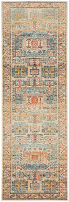 Indulge in this one of a kind rug from the famous Legacy collection. The Legacy Sky Blue rug highlights a fusion of Aztec patterns and contemporary scheme. With aqua, red and rusty tone, the piles chic further amplifies with ornamental figure surrounds and ensures durability via serge edges. This faded Persian-inspired design is crafted in Turkey from 100% polypropylene, which is naturally designed to stand up to dirt and debris in the entryway or the occasional spill under the kitchen table.