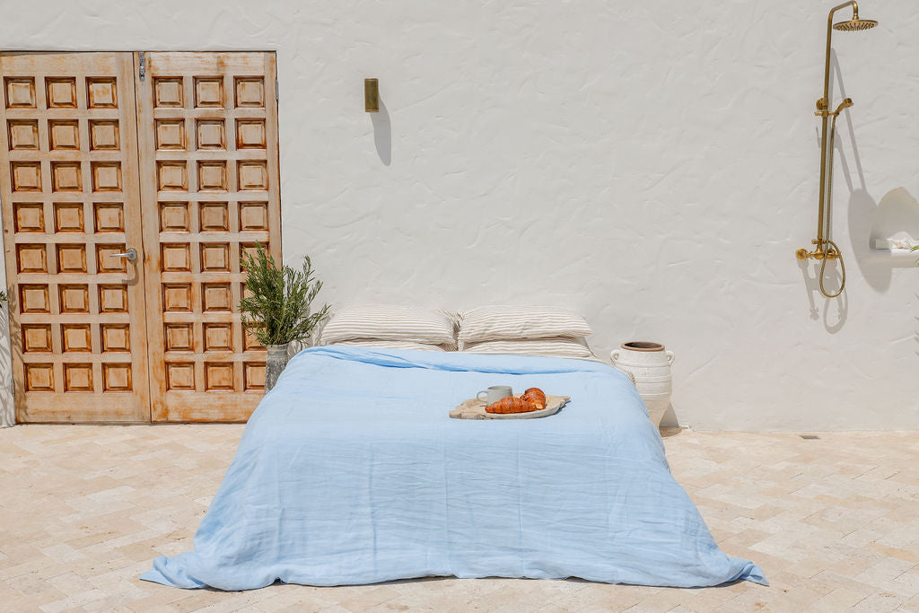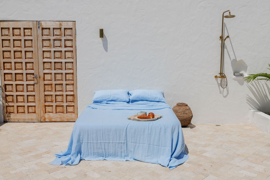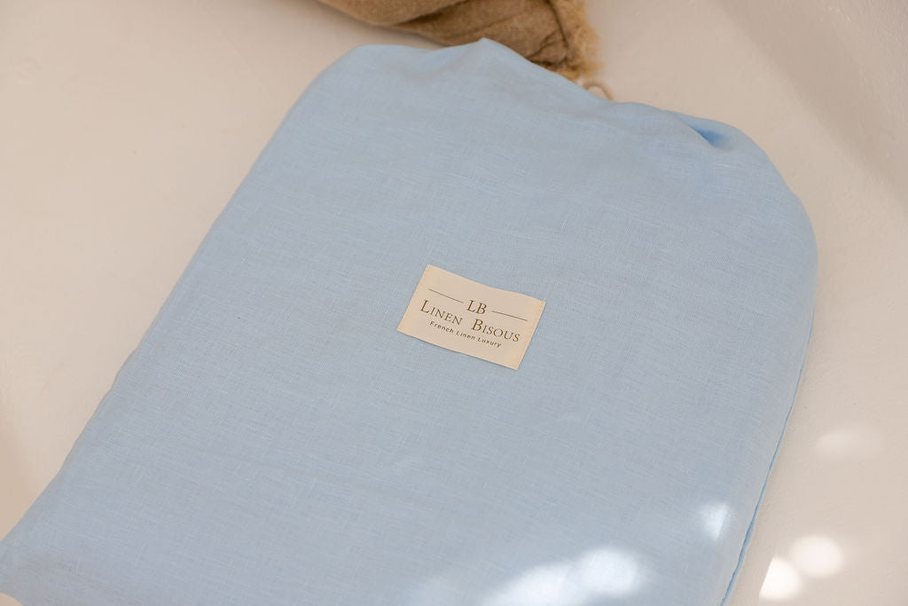 This pairs beautifully with our signature Parisian Blue French Linen Sheet Set.