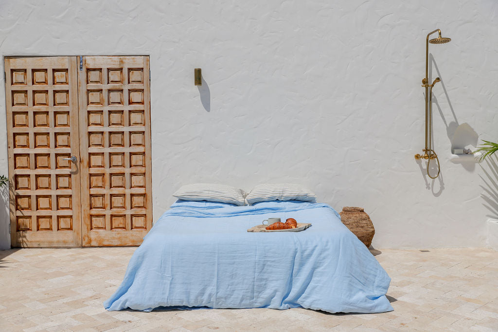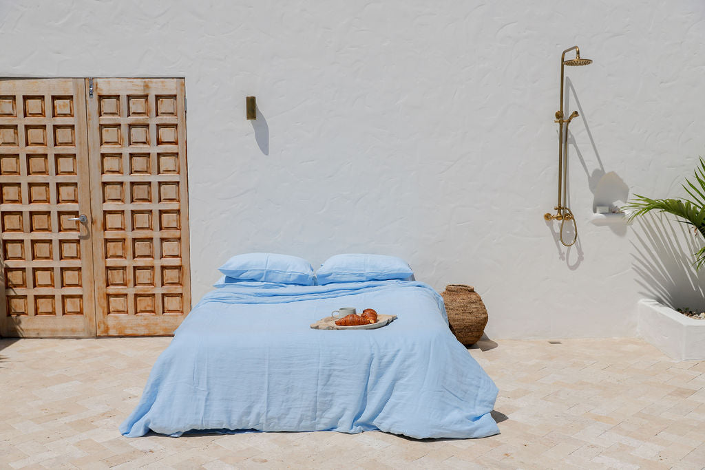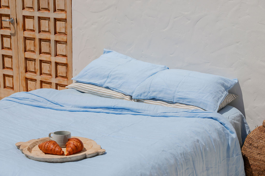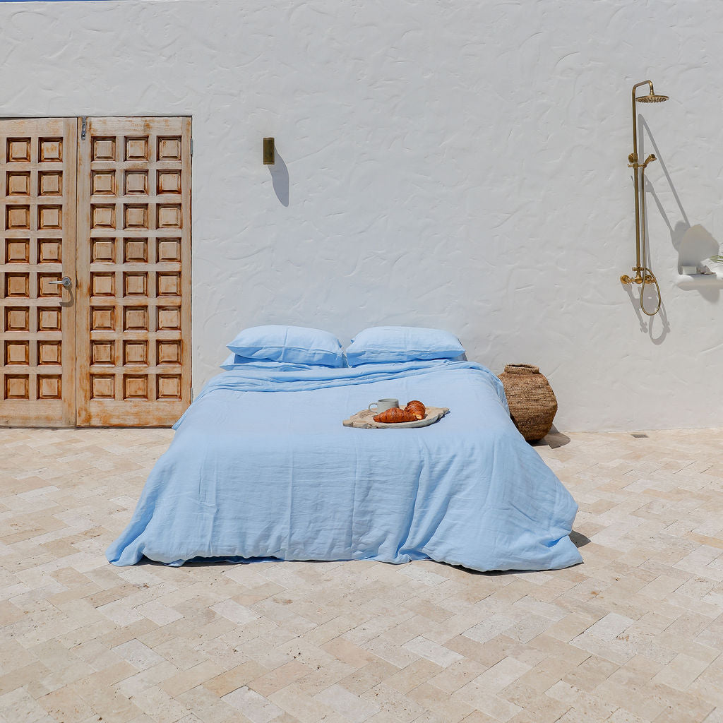 Sky Blue Linen Duvet Cover Set