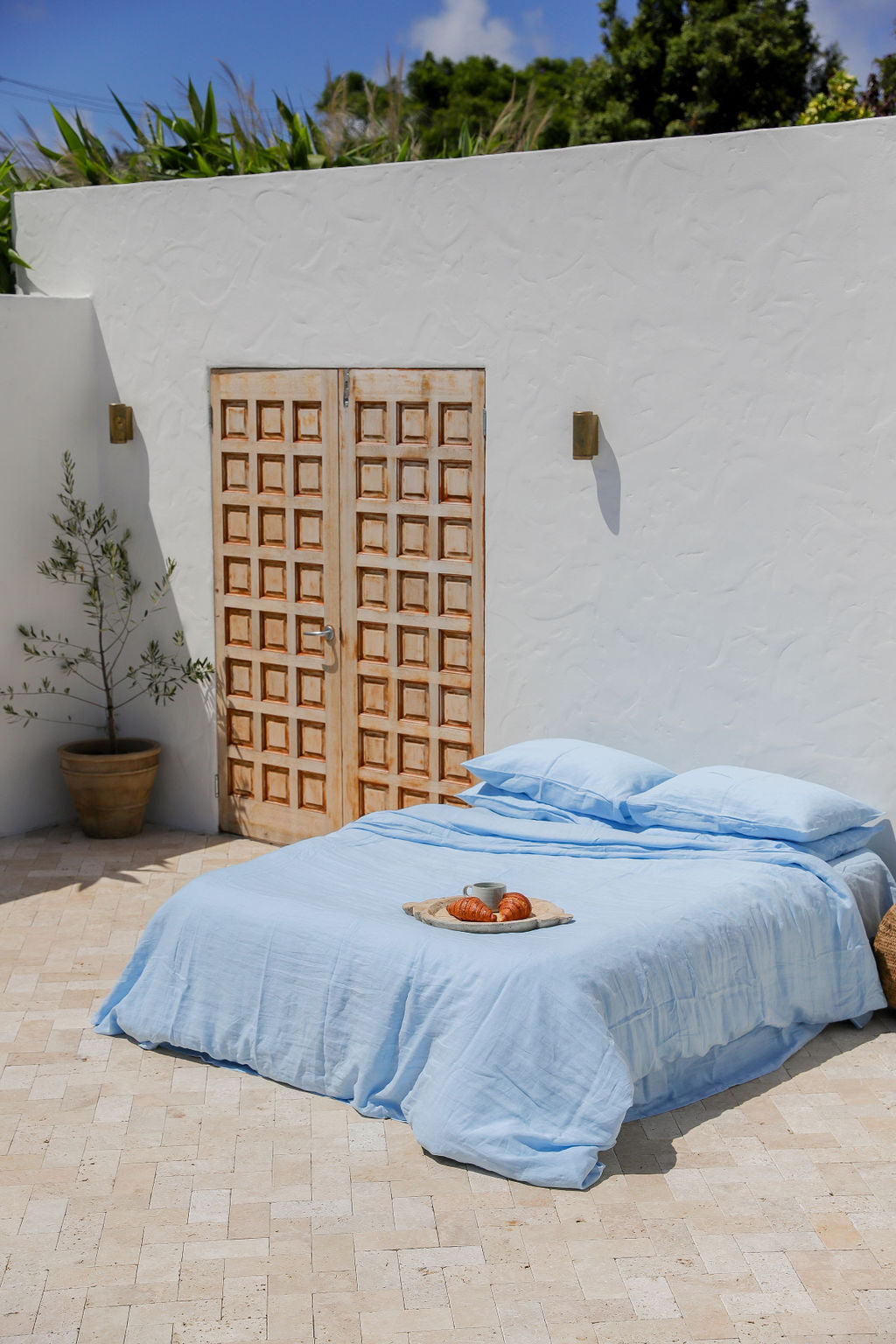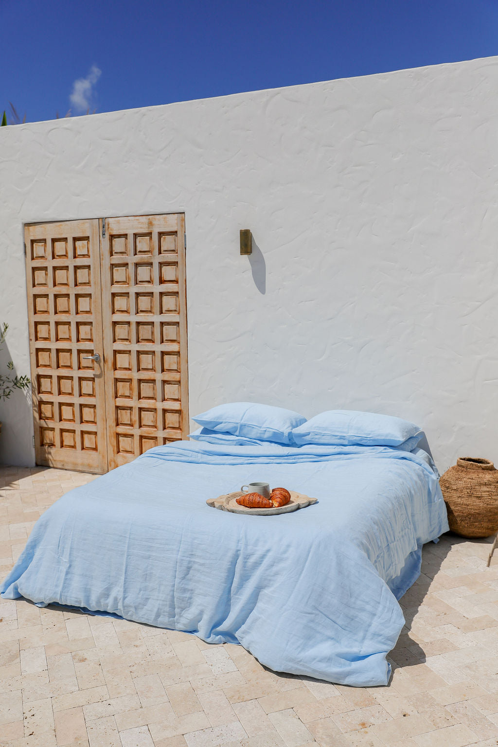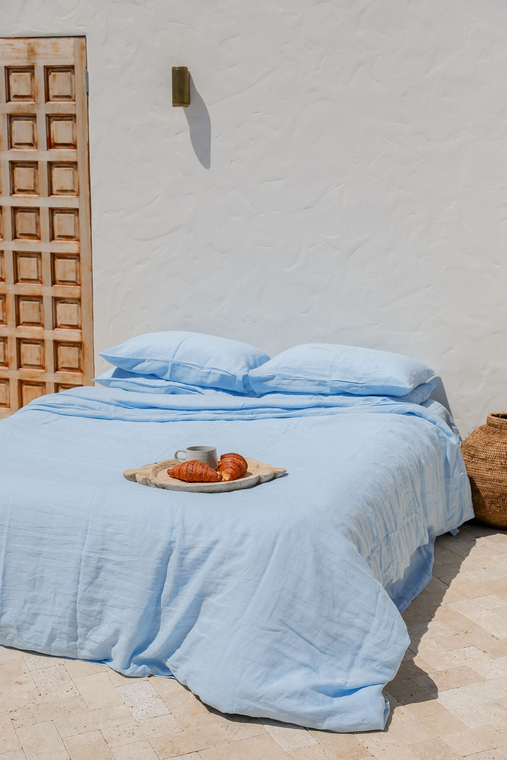 This pairs beautifully with our signature Parisian Blue French Linen Duvet Set.