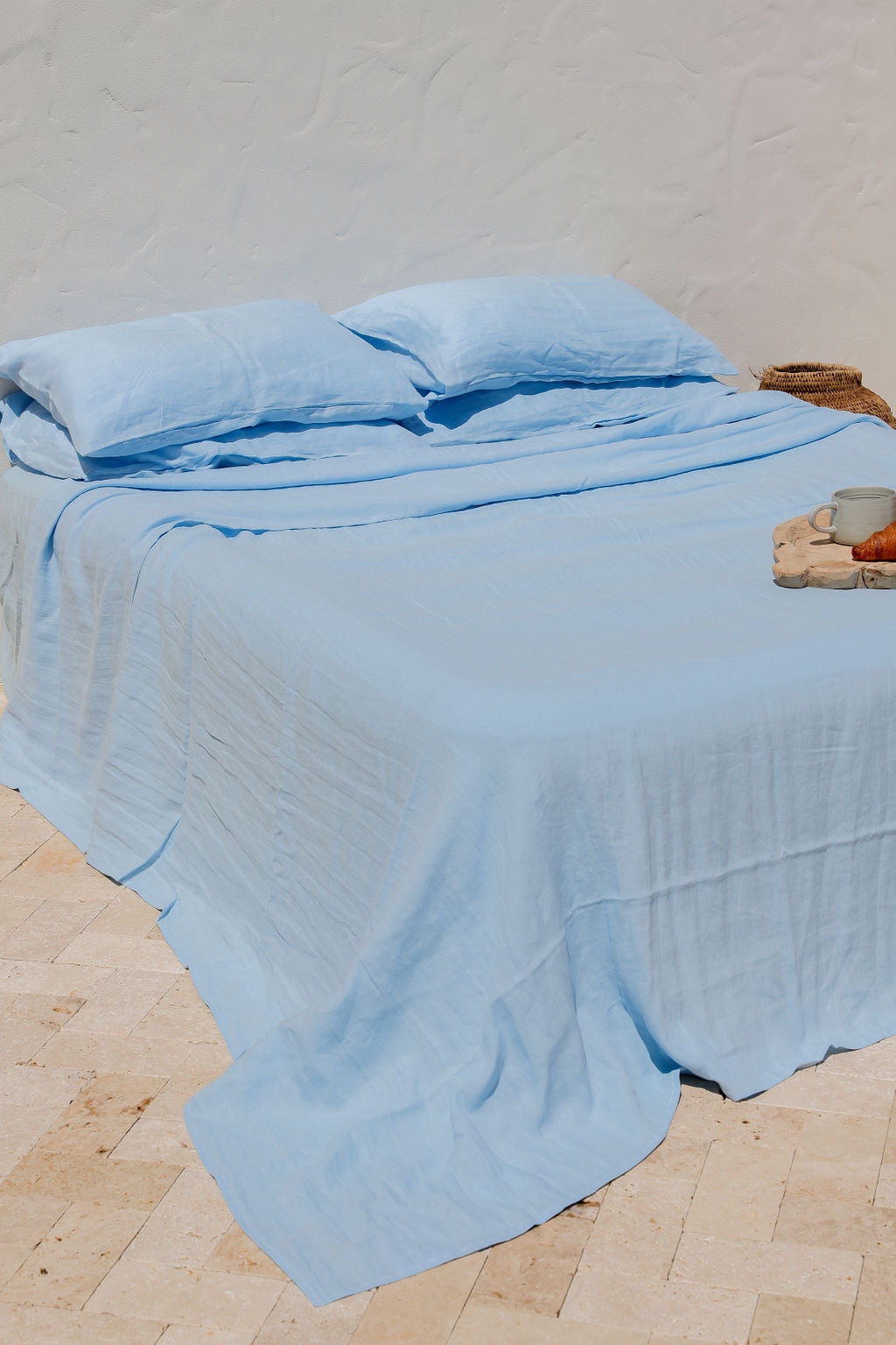 Sky Blue Linen Sheet Set