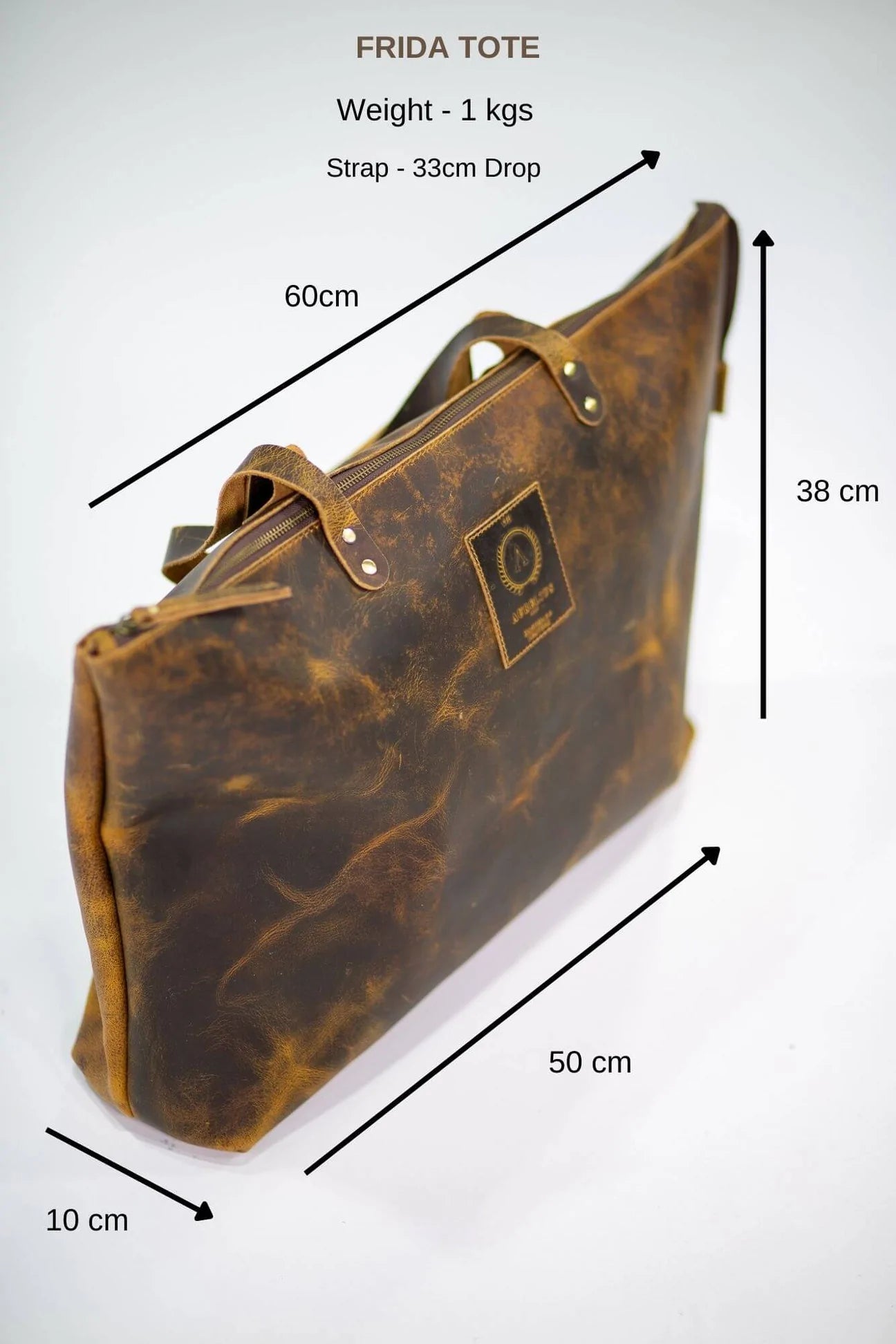 The Frida is a signature of Aurelius Designs. Whether it’s carrying everything you need for a day at work or your Sunday Farmer’s Market goodies, the Frida will make it feel & look easier than ever. This vintage leather tote is both practical & stylish with an internal zip pocket as well as a large zip to keep your belongings safe & sound. Made from 100% authentic vintage Buffalo Leather, it’s built to last a lifetime. The Frida is ready to start a new and exciting journey with you.