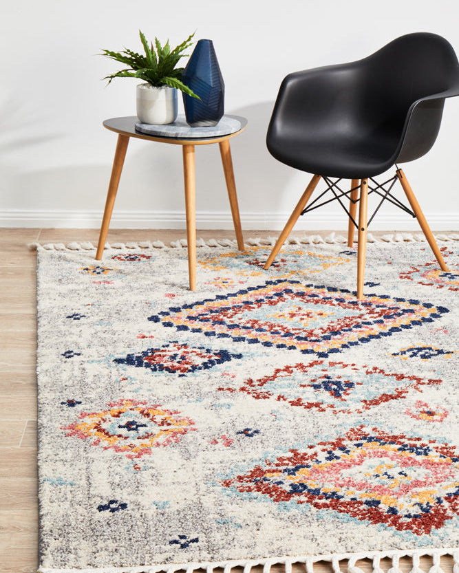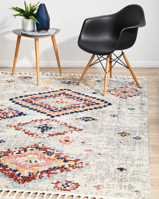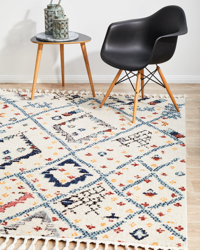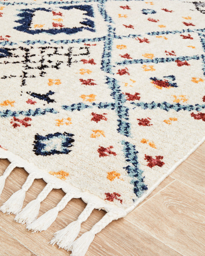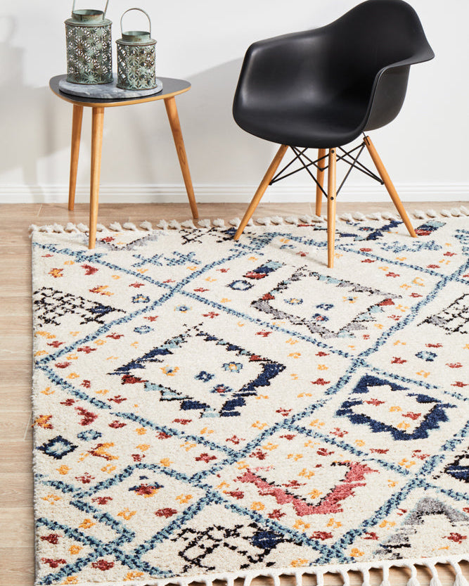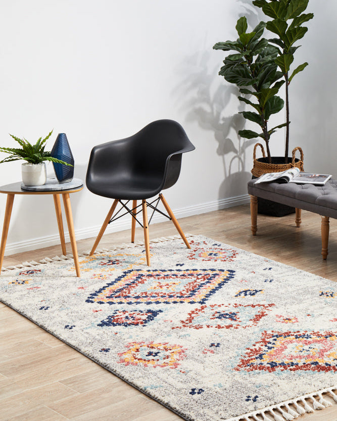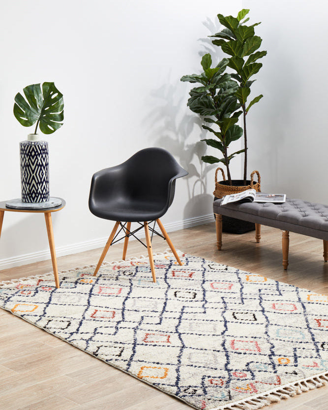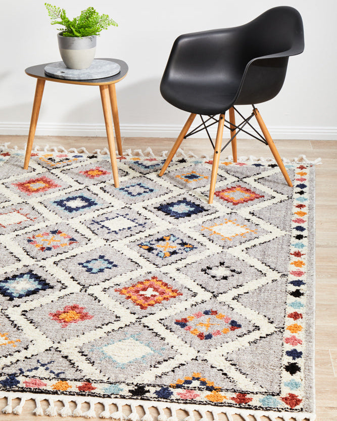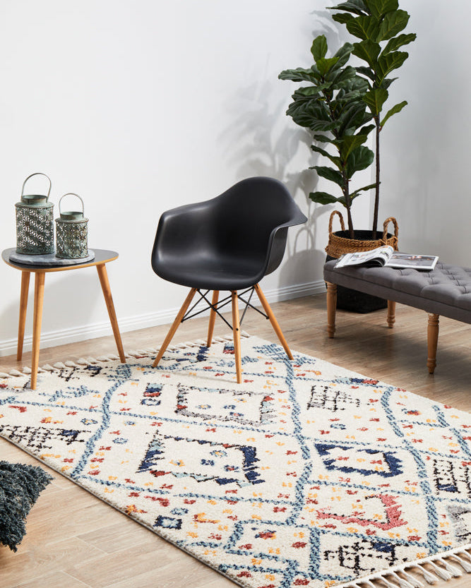 Indulge yourself in this excellent Moroccan berber inspired collection. Marrakesh strides deeply with bold multicolored palette of diamond patterns duly plotted with mixed patterns giving a truly amazing tribal decor statement. This collections material is expertly woven using polypropylene which highlights a soft 20mm pile, a total eye catcher and everyone would love to have this collection.