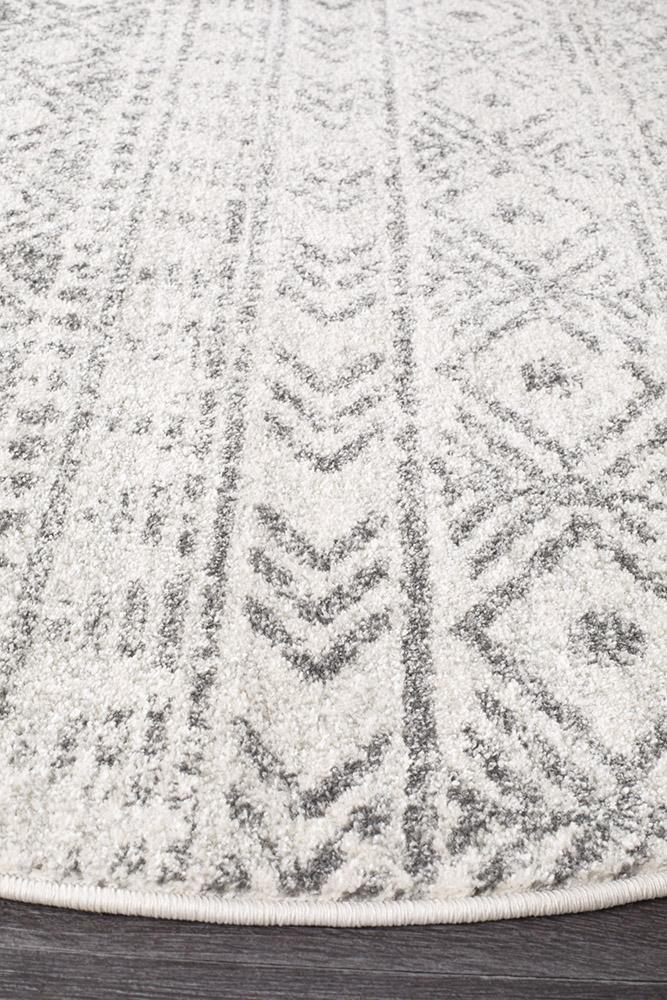 Oasis Ismail White Grey Rustic Round Rug