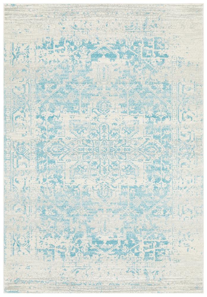 Transcend the winter ambiance with this one of a kind range from the famous Evoke collection. The Evoke Glacier White Blue pile is a magnificent fusion of fashion-forward style and plush texture, it features a magical emblem center with ornamental surround on azure and off-white context. Using the latest technology on power looming construction, made from the finest polypropylene and soft yarns, exposed the beauty of any room context with unique style and flair.