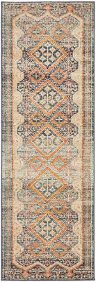 Colorful and culture centric, this Legacy Navy rug highlights a multicolored array of interweaving diamonds with ornamental figures plugged inside and along the edges. This fantastic piece heirlooms are power loomed using soft yet durable synthetic yarns and finished with artistic fringe, enriching living areas with bohemian warmth and eclectic style. These rugs offer a terrific modern look to any decor.