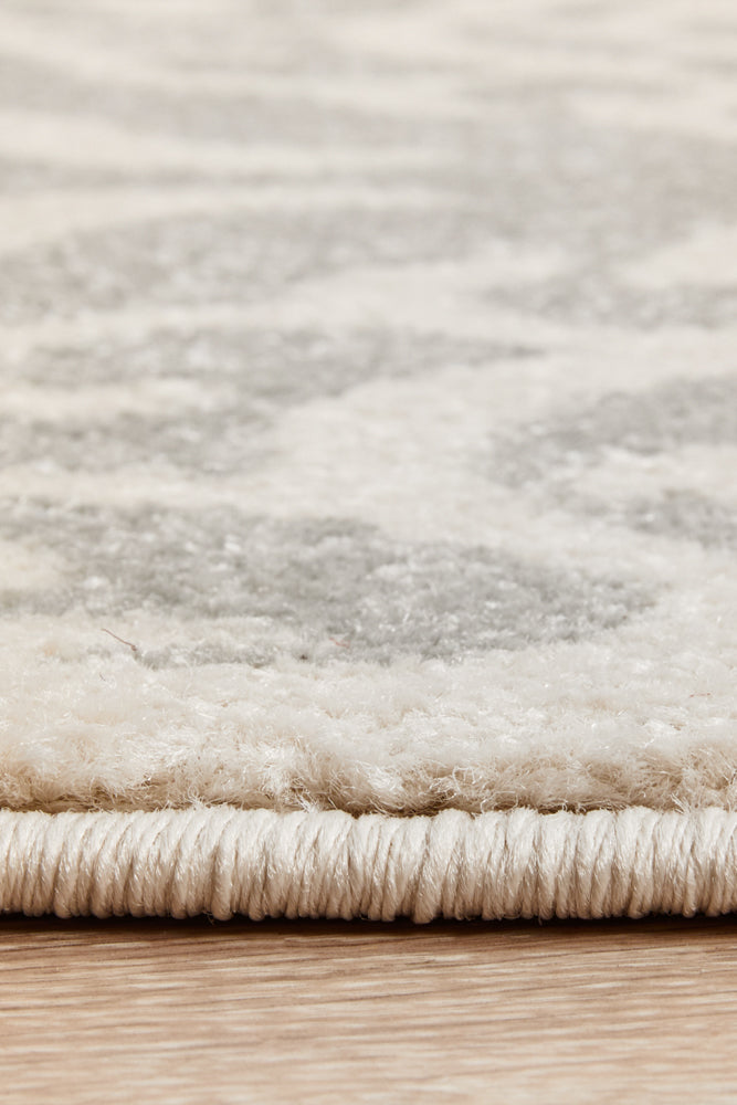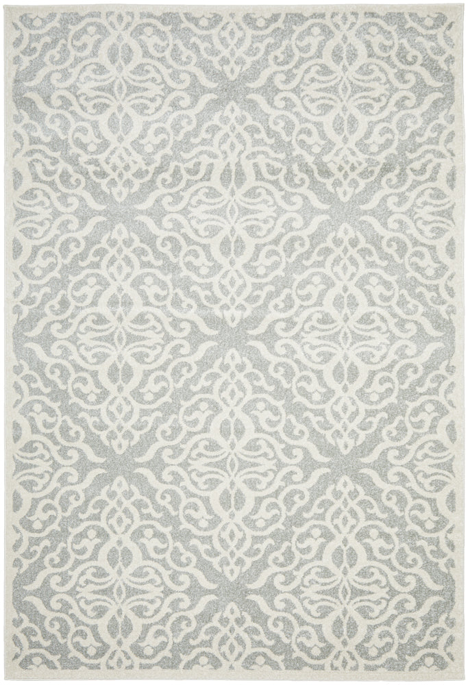 Magnificently monochromatic, this silver and white palette is adorned with a floral trellis design. Power loomed with a polypropylene pile, this rug is non-shed and easy care. These rugs offer style, versatility and are available in rectangles, rounds, and runners in a large variety of sizes.